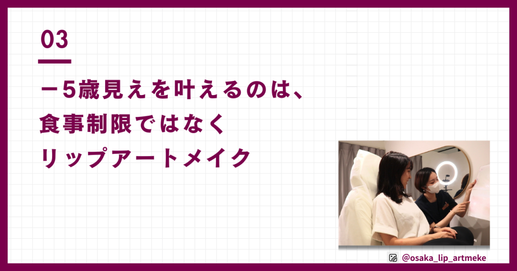 大阪梅田リップアートメイクで-5歳見えを叶える!食事制限ではなくメイクで